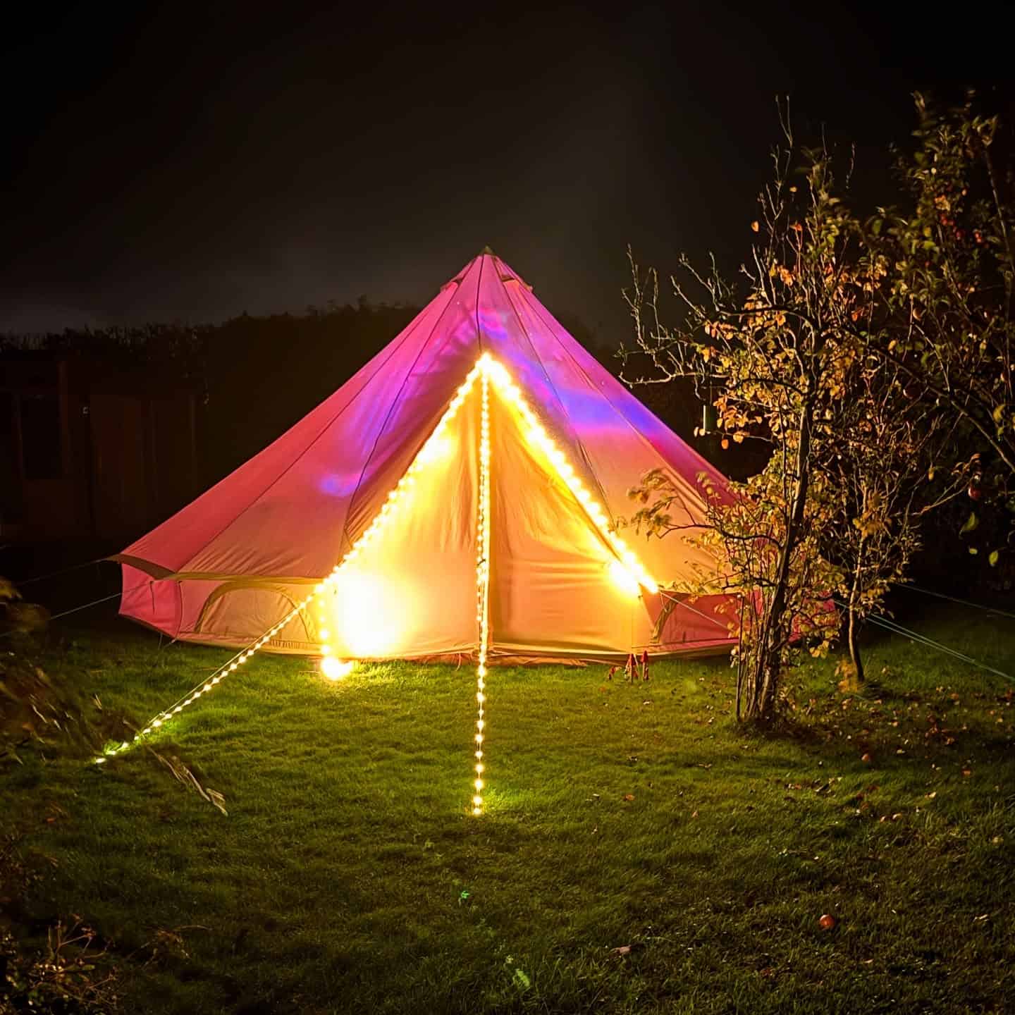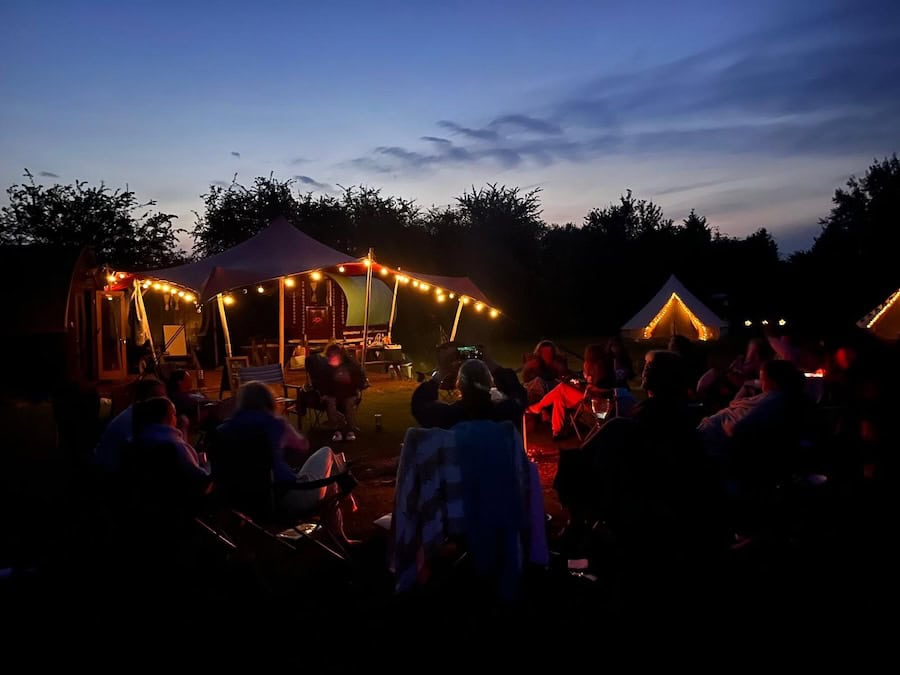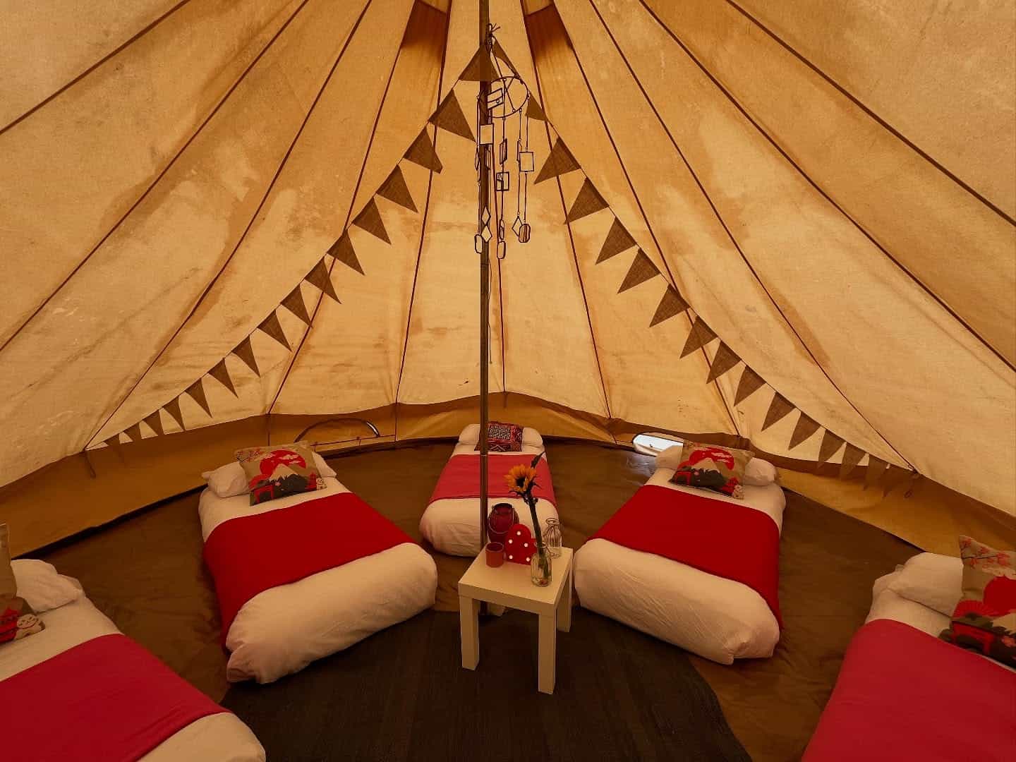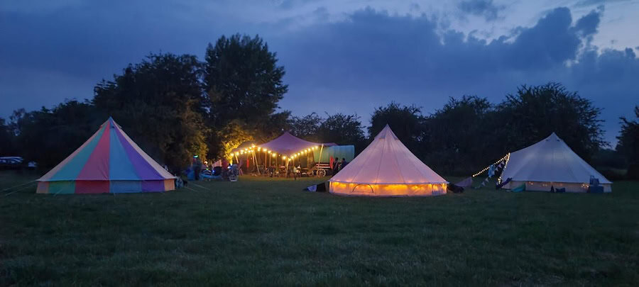 Accommodation is in shared, beautiful bell tents. You’ll need to bring bedding, two breakfasts, and one lunch. A freezer box and fridge are available, as are hot showers (and, of course, the hot tub).