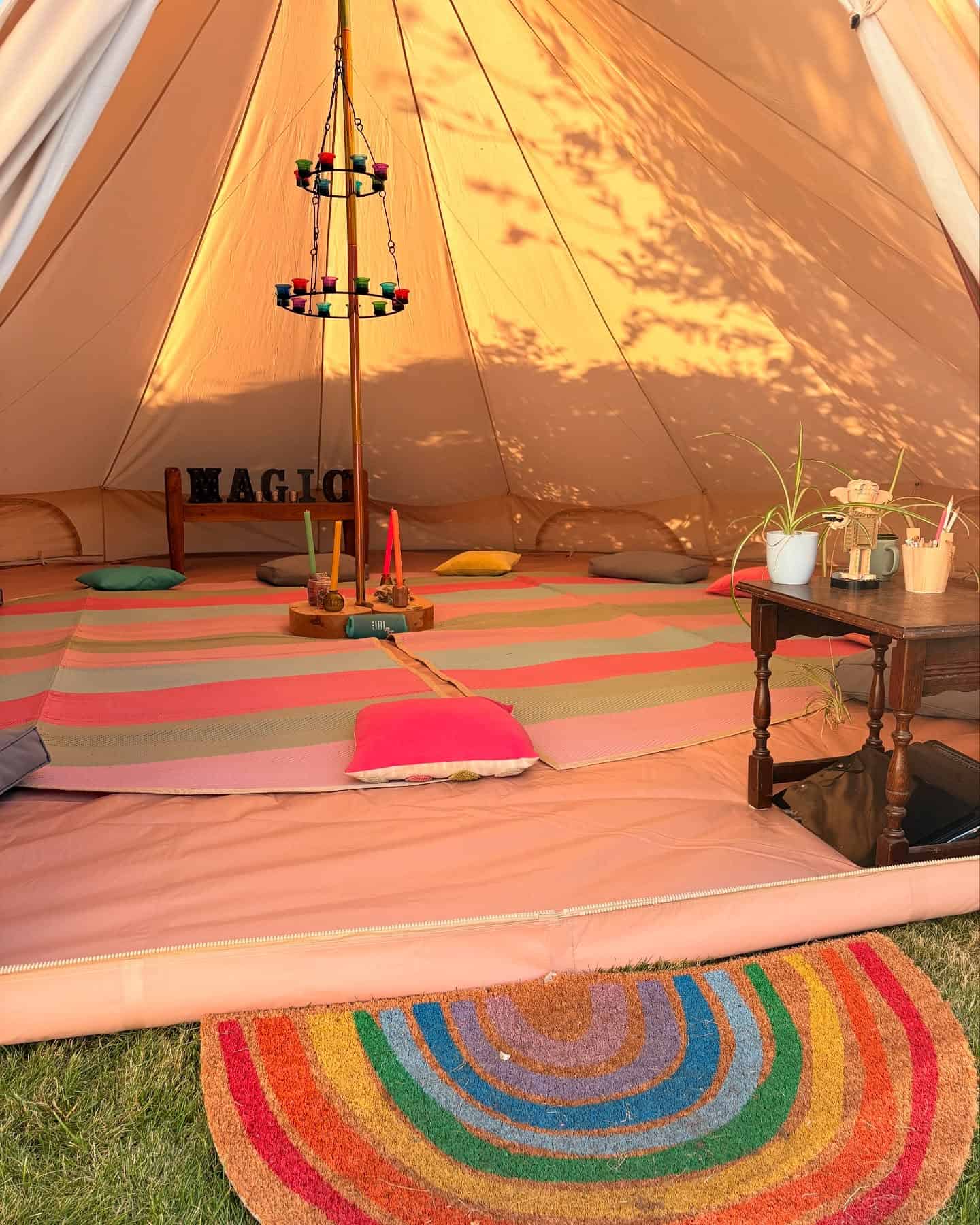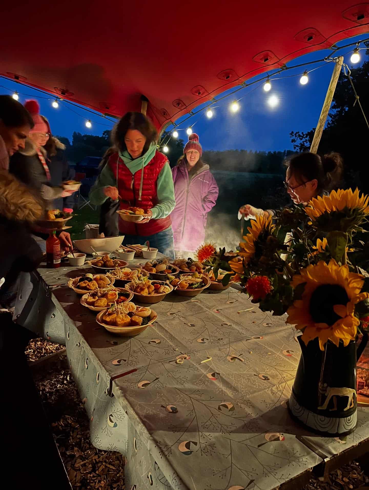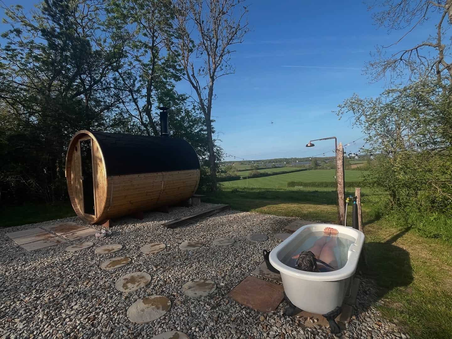 Accommodation is in shared, beautiful bell tents. You’ll need to bring bedding, two breakfasts, and one lunch. A freezer box and fridge are available, as are hot showers (and, of course, the hot tub).
